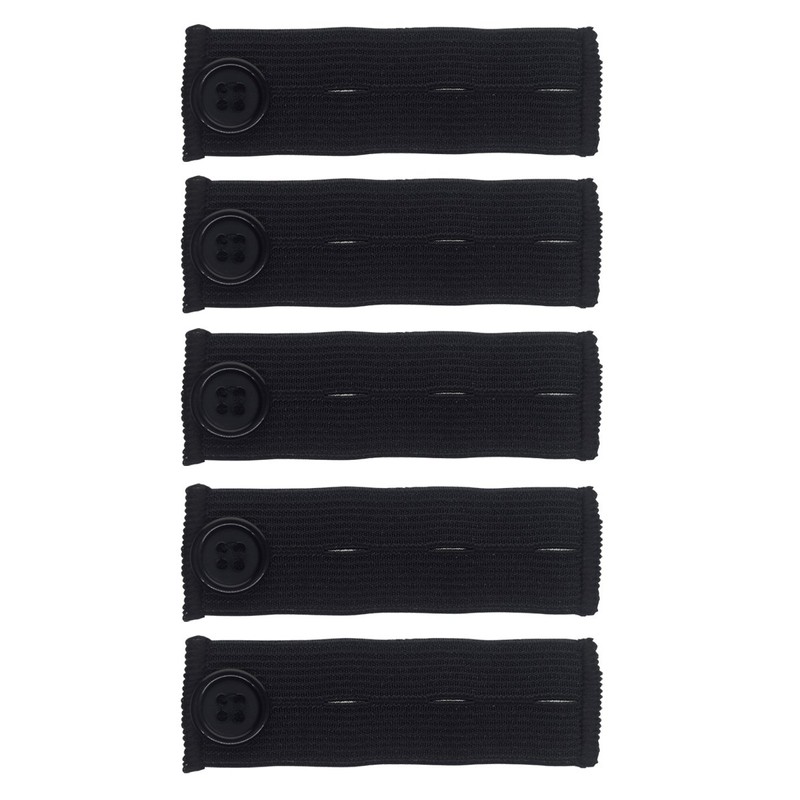 Elastic Pants Waist Extenders, Adjustable Pant Button Extenders For Jeans Skirts Pants, Maternity Waistband Button Extender Set (5 Pack, Black)