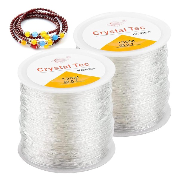 Elastic Stretch Cord, 2 Rolls 0.7 mm Transparent Jewellery Thread, Elastic Jewellery Thread, Bead Cord for Bracelets, Rubber Bands, Nylon Thread for Bead Jewellery, Bracelets, Crafts (200 Metres)