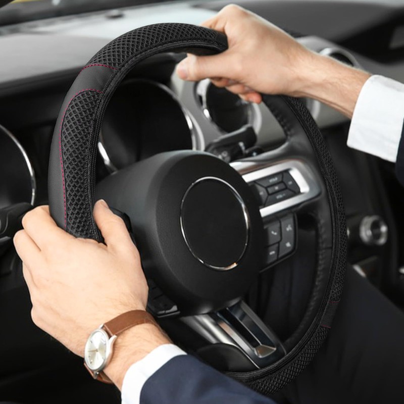 - Elegant Design: This leather steering wheel cover boasts an elegant design that enhances the interior look of your car. It is stylish without sacrificing practicality and comfort. Strong breathability and sweat absorption, Suitable for 4 seasons spring, summer, autumn and winter