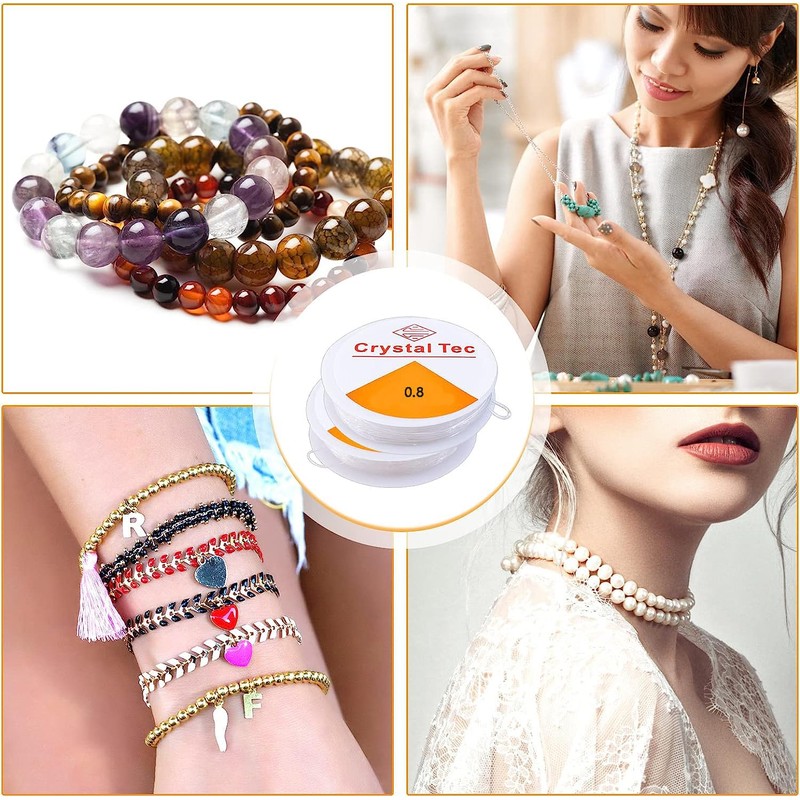 - 【Package Contains】You will get 4 rolls 0.8mm elastic bracelet string cord, The length of each roll is 8M, the total length is 32 meters to meet your needs for making handicrafts.