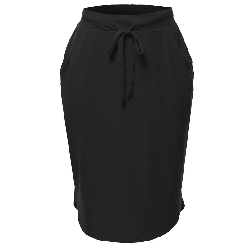 Elastic Waist Self Tie Tulip Hem Side Pocket Skirt Black M