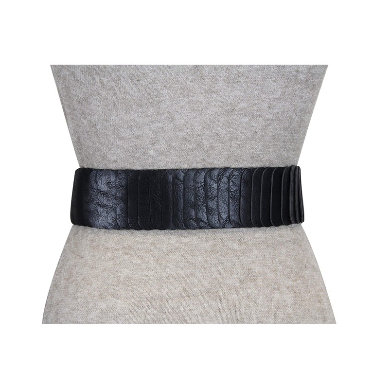 Elastic Women's Waist Belt, Approx. 6 cm-Wide Waist Belt with Silver Ring Buckle - black