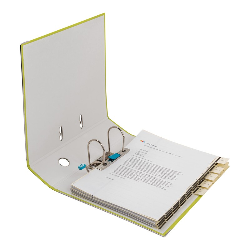 - Ordner mit präzise schließender Hebelmechanik und Niederhalter