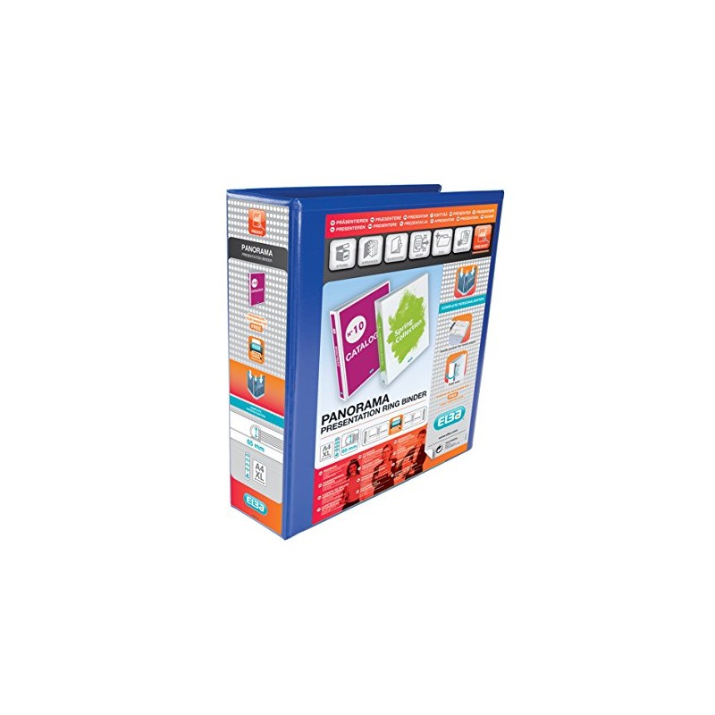 Elba A4 4 D-Ring Binder, 65mm capacity, 90mm spine, Presentation Folder with Customisable Cover, Portrait, Blue (Single)