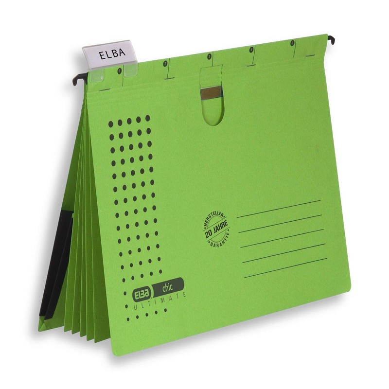 Elba Chic ULTIMATE 100333014 Organising File 5 Insert Sheets and 5 Dividers with Expanding Pocket on the Back Cover Pack of 5 Green