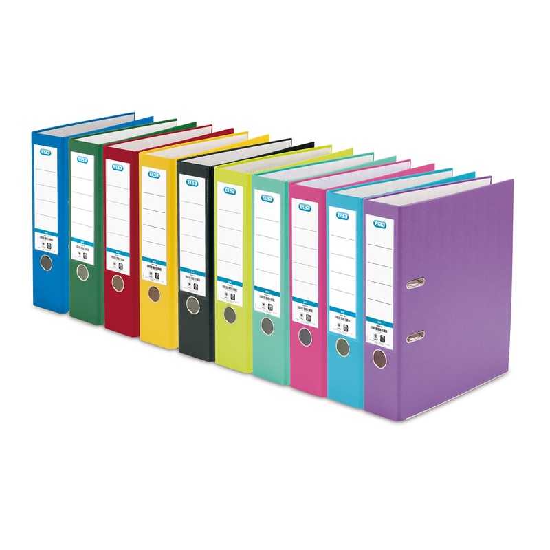 - Lever arch file in DIN A4 format, outside covered with polypropylene film (dirt and moisture repellent), lined with paper inside