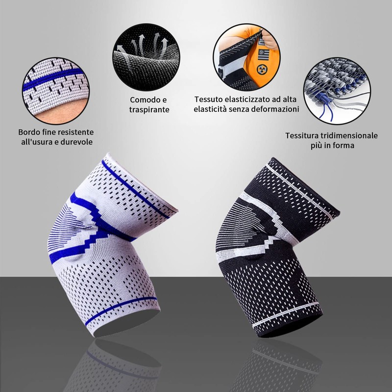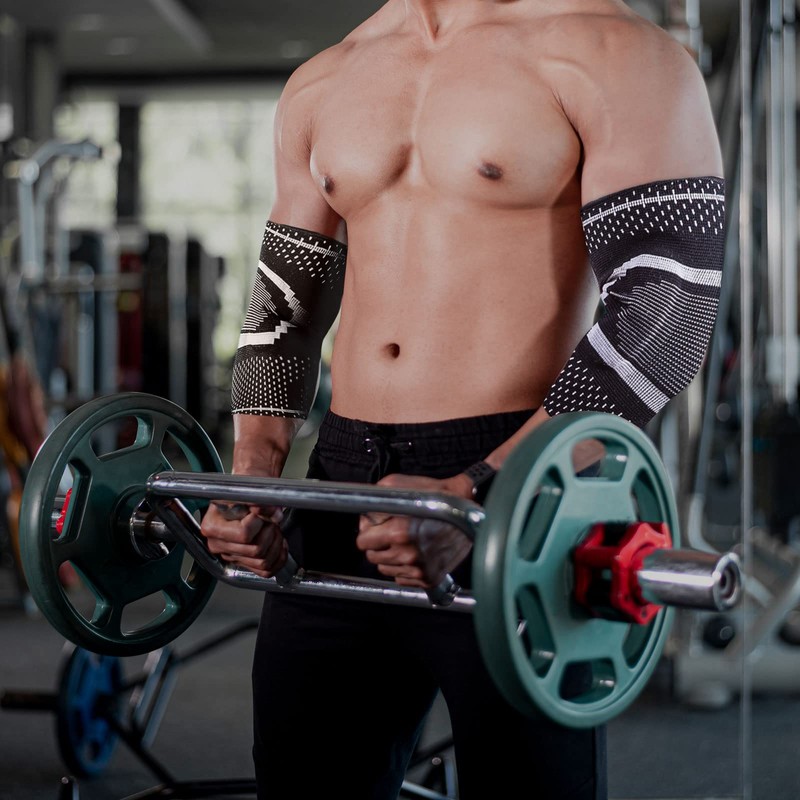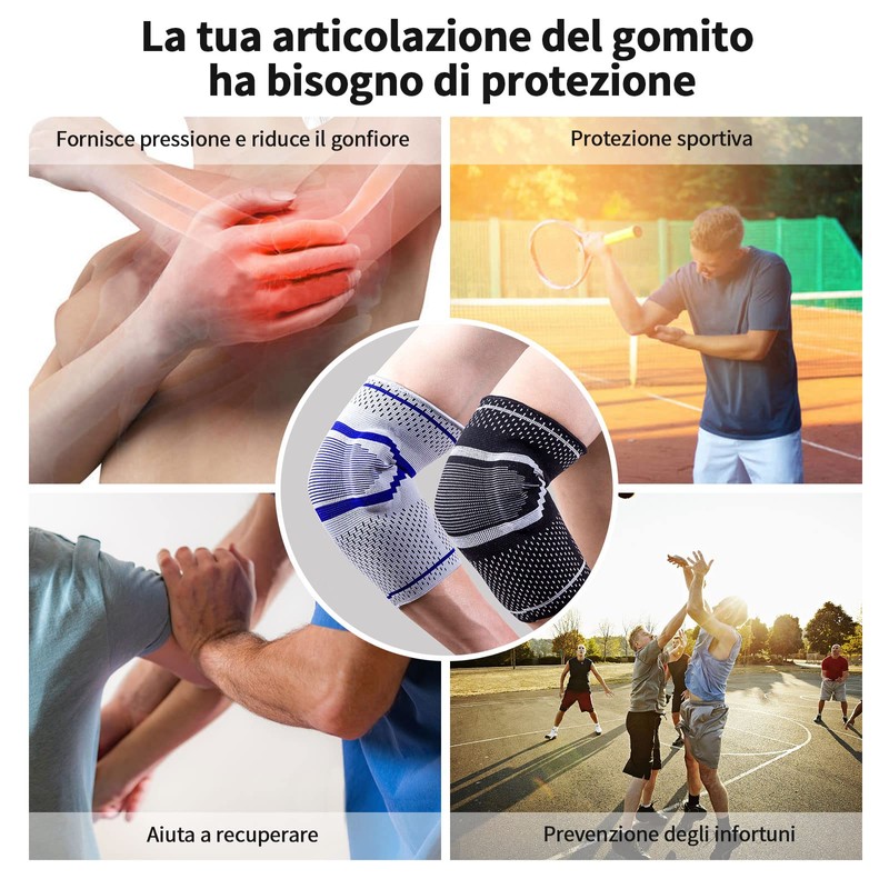 - SPECIAL CUSHIONING RING The elbow brace has an elegant appearance, gray teether that conforms to the contours of the elbow. These elbow sleeves are designed to support all fitness levels; four support lines that can stabilize both sides to keep the elbow warm