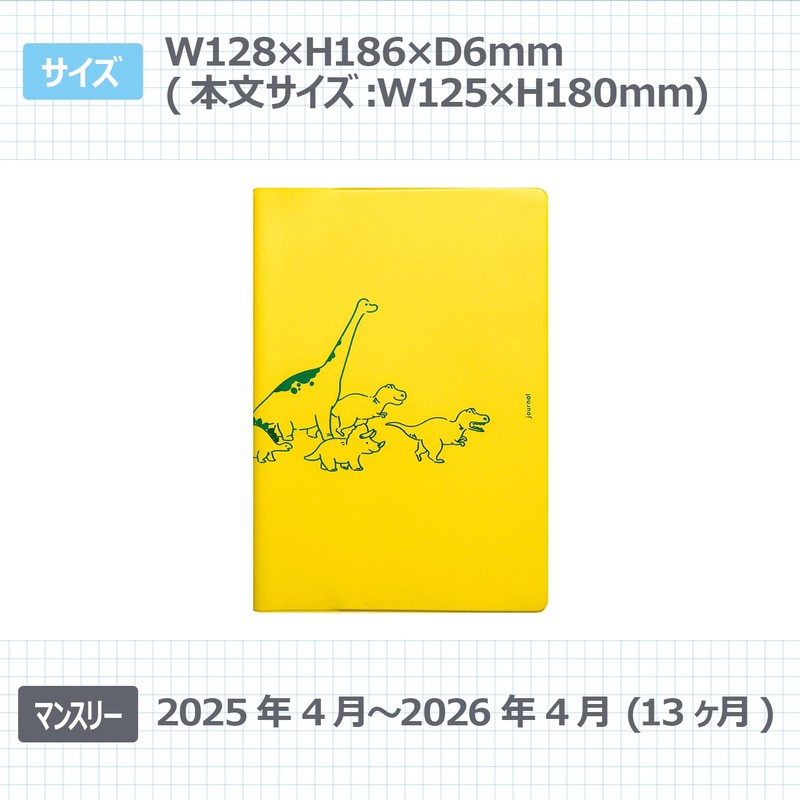 Elcomune Matka DR-MH-513 Monthly Planner, Starts April 2025, B6, Full Color, Alara Dinosaur