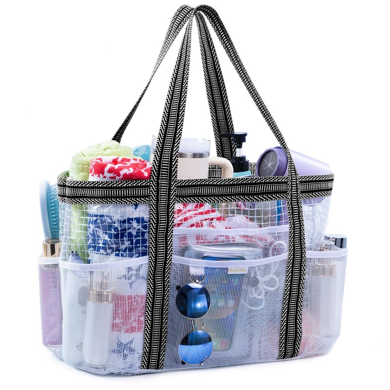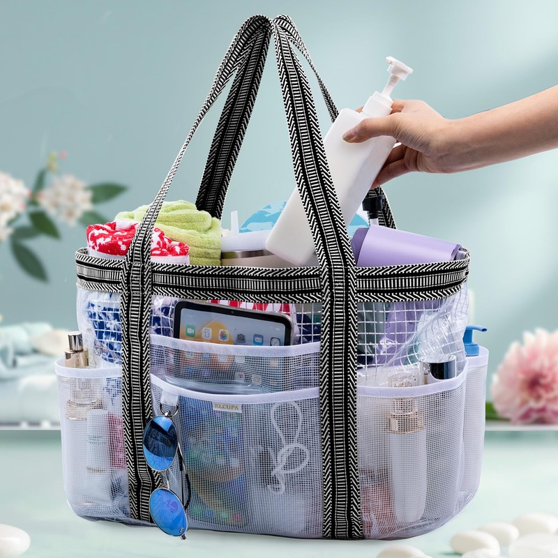 ELCUPA Large Mesh Shower Caddy – Portable ShowerTote with Waterproof Phone Pouch – Quick Dry Shower Bag with Separate Dry & Wet Zones for College Dorm, Gym, Beach Tote, Camping, Travel Essentials
