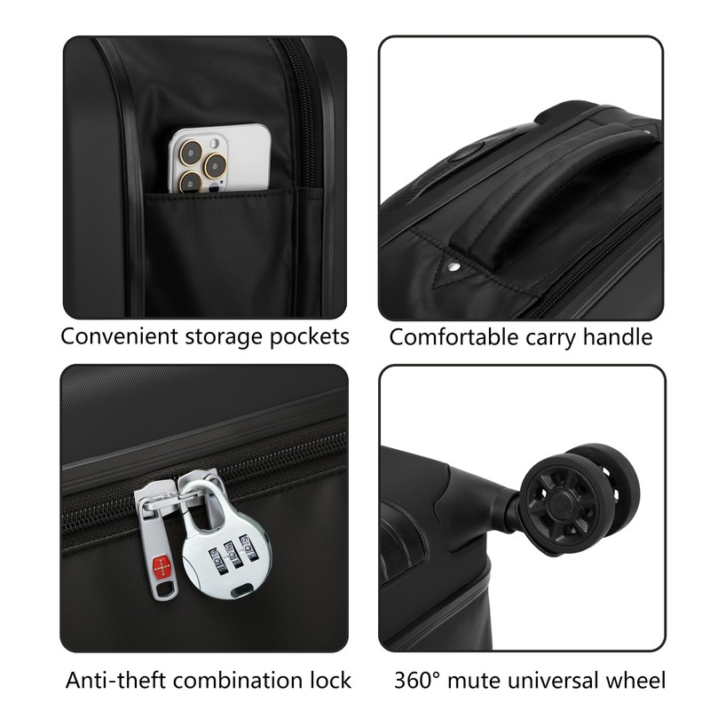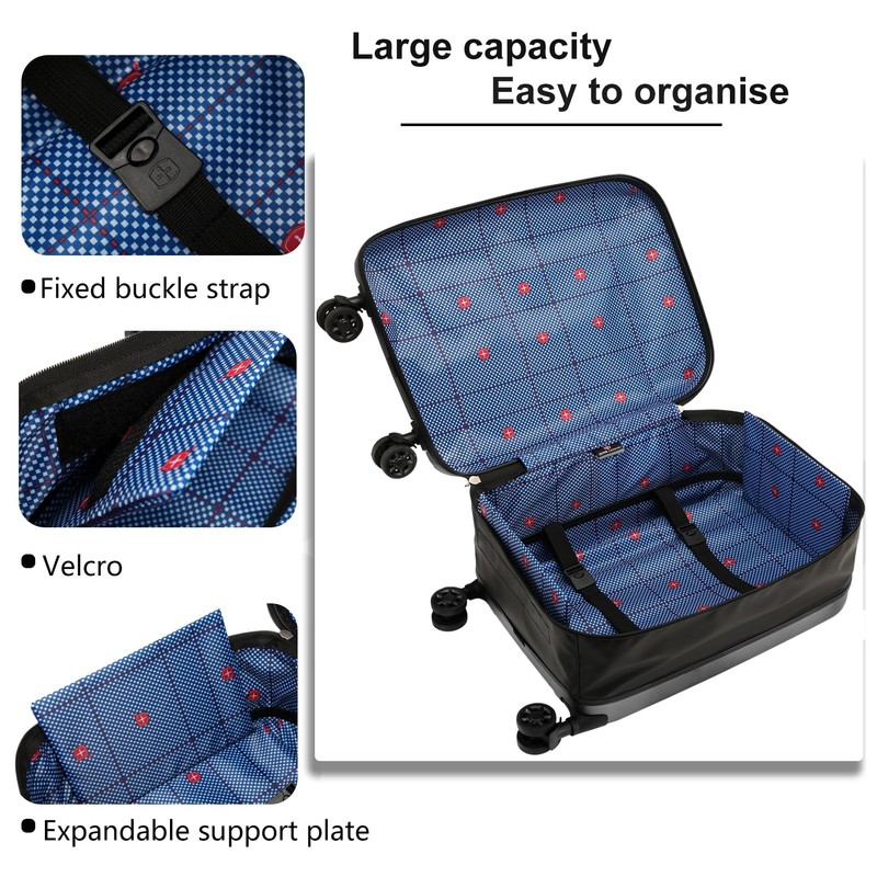 - Design Features: The interior of this folding suitcase is designed with a unique velcro expansion panel, which can be used to expand the space by pulling open the expansion panel. When not in use, it folds down to 3.5 inches for easy storage