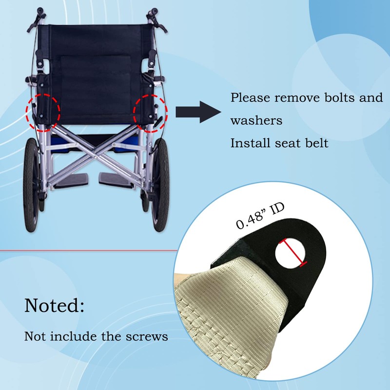 - Easy to install with grommets, no need to drill hole. Remove bottom screws from left and right side of the wheelchair backrest, insert screws through grommets on the belt.