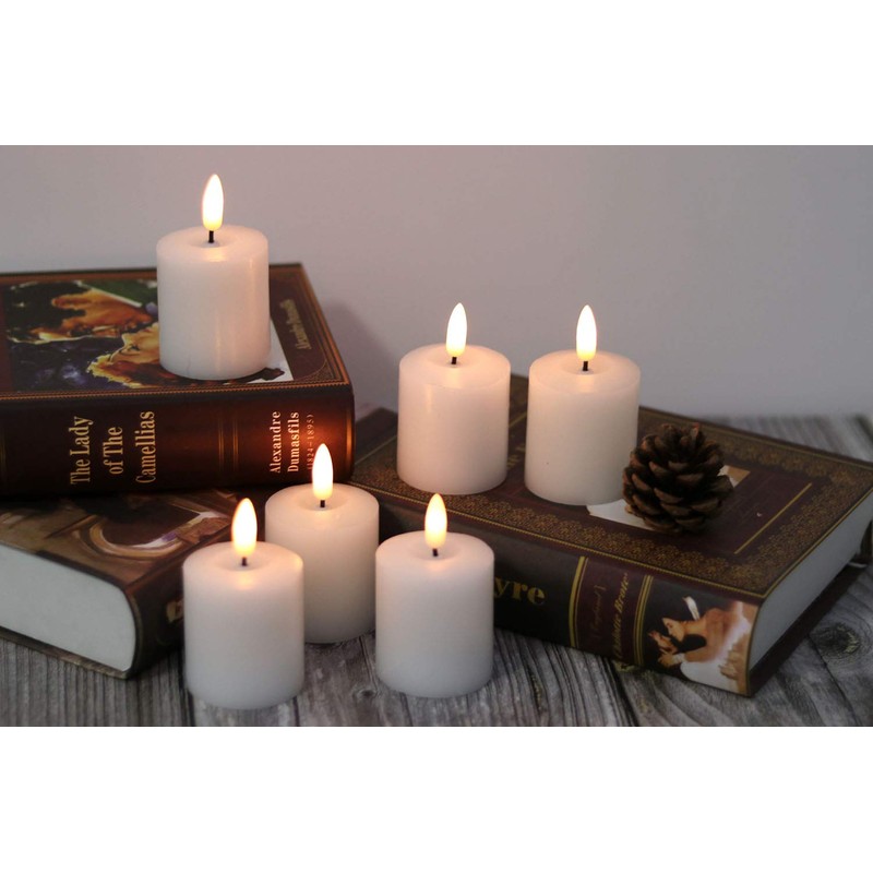 Eldnacele Flameless Flickering Votive Candles with Timer, Realistic Black Wick LED Pillar Candles D2” x H3” Battery Operated Candles Real Wax Set of 6 White(Battery Included)