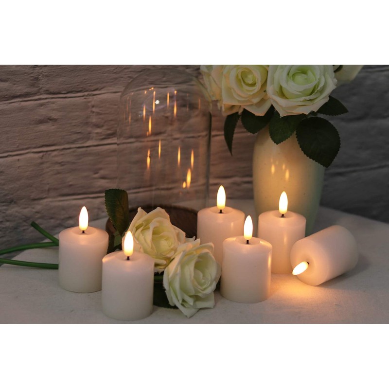 • 【Made of Real Wax】These LED votive candles (2" Diameter and 3" Height) are made of white real paraffin wax with melted-edges giving you a realistic appearance as traditional burning candles. Realistic flame flickers softly and gently, just like a real candle in white color, glowing a soothing and relaxing ambiance.