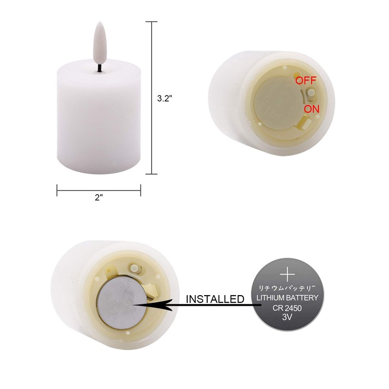 • 【Long Lasting Battery Included】6 pcs of high capacity CR2450 battery included, each candle requires one CR2450 button cell battery (Included). We guarantee that the battery working time is longer than 300 hours, free replacement or full refund promise if we broke our words.