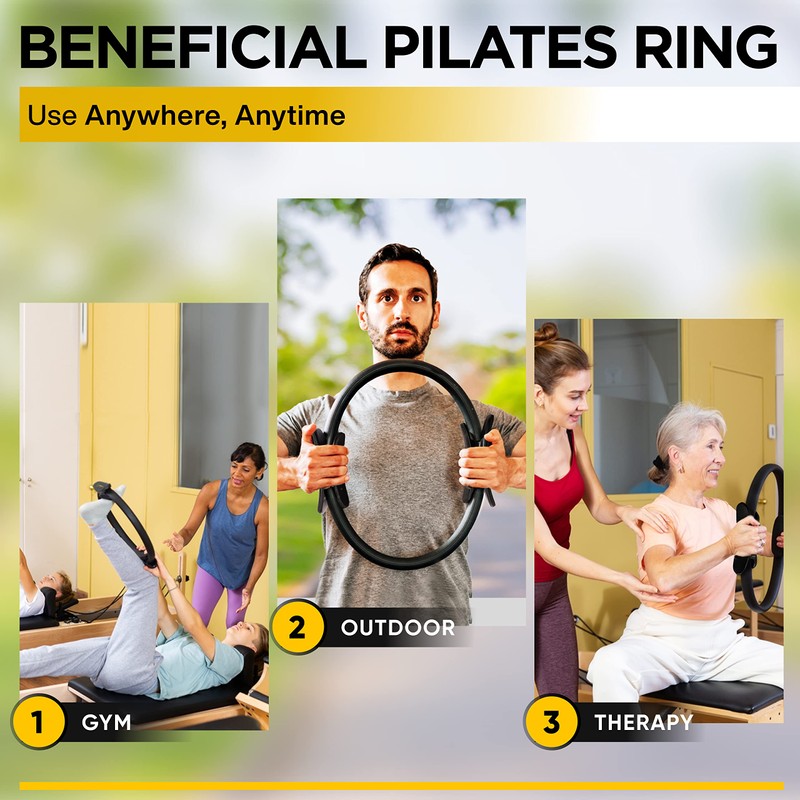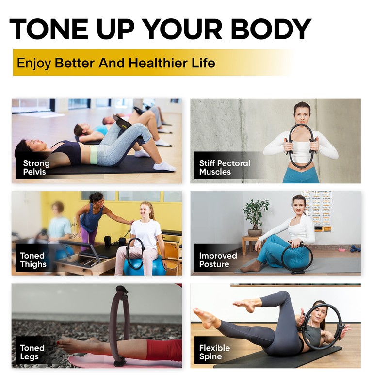 - Strengthening & Toning: With our pilates ring, you can easily target stubborn fat deposits in your thighs, arms, hips & abs. By exercising with our pilates, you'll also improve your wellness by building core, pelvic & spine flexibility.