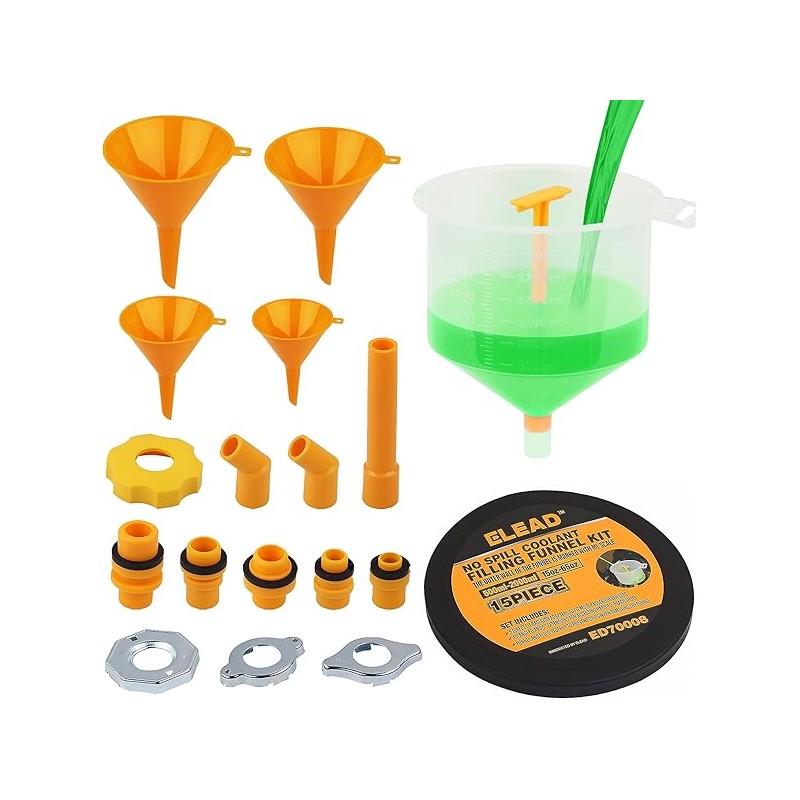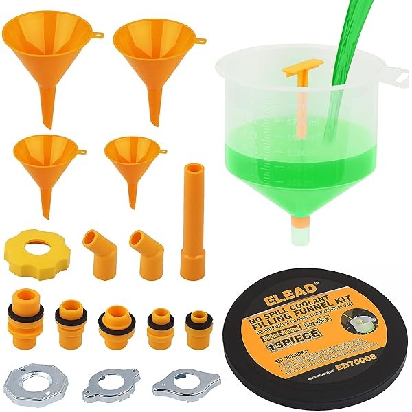 ELEAD 19 PCS No-Spill Coolant Funnel Kit Radiator Funnel burping kit funnels for Filling Bottles Universal Fitment Aplicable to Any Vehicle funnels for Automotive use 4PCS Round Kitchen Funnel