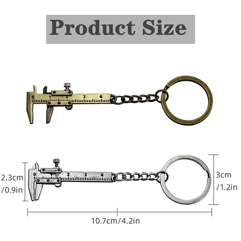 • Package Includes: The package contains 2 pcs vernier caliper key chain key ring, 1pcs antique gold and 1 pcs silver.