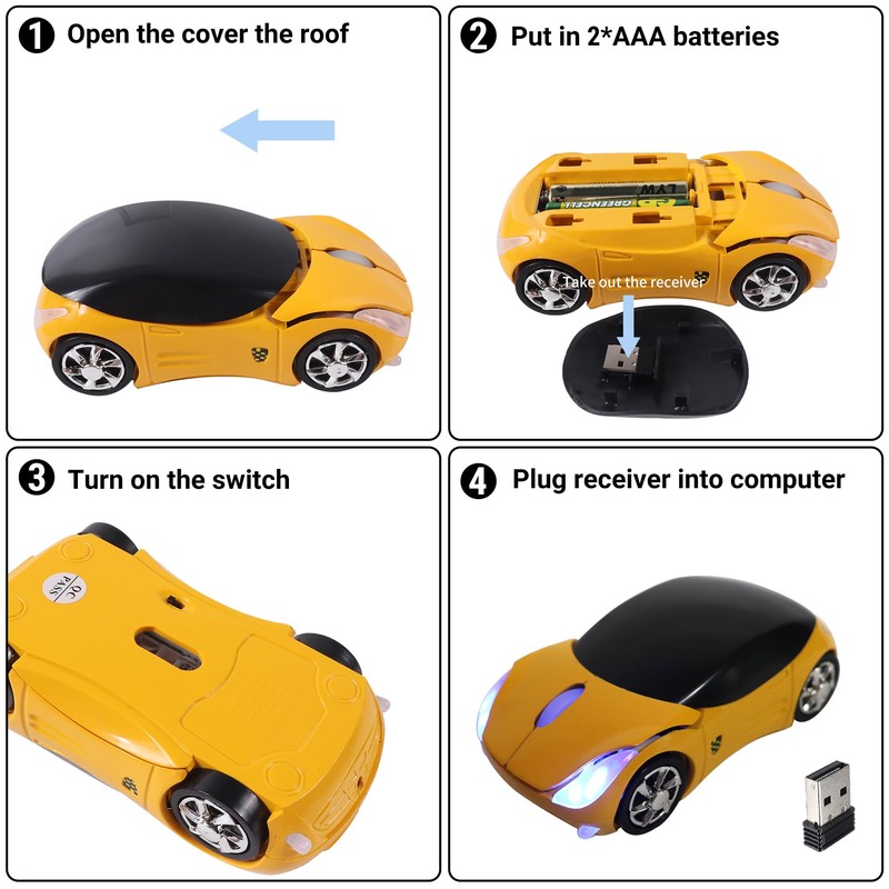 - 2.4GHz wireless digital transmission, the car-shaped computer mouse operation distance is up to 14 meters; High quality, ergonomic design, comfortable to grip