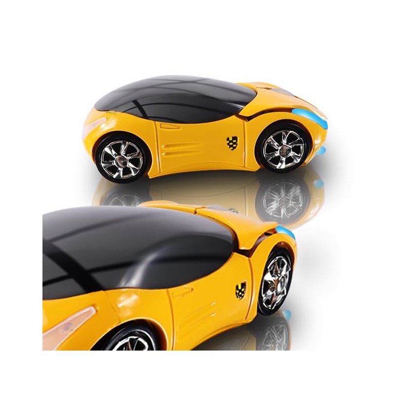 elec Space Wireless Mouse, Cool 3D Sports Car Shape Ergonomic Optical Mice, Mini Mouse for Kids, Computer Mouse for Laptop PC with Mouse Case (Yellow)