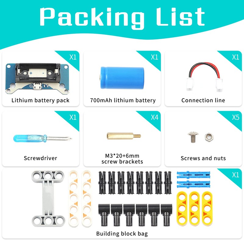 - 【3.6V Rechargeable Battery】: It can provide a stable and powerful power supply, which is more stable during the movement of the micro:bit car.