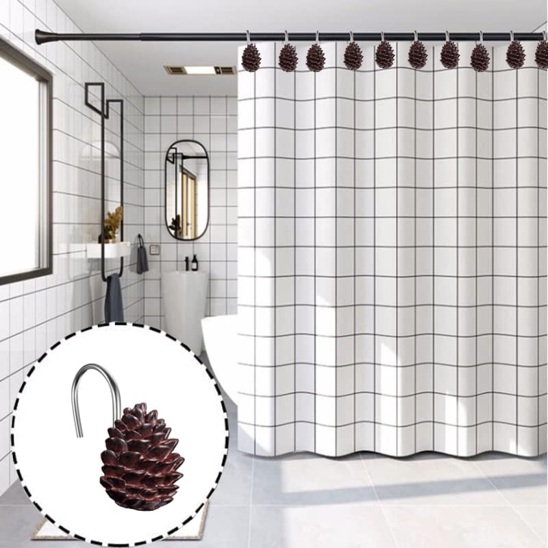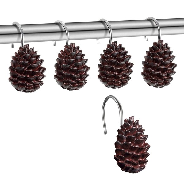 EleCharm 12-Pack Resin Pinecone Decorative Shower Curtain Hooks Steel Sliding Bathroom Curtain Rings Pendant Hooks (S Pinecone A)