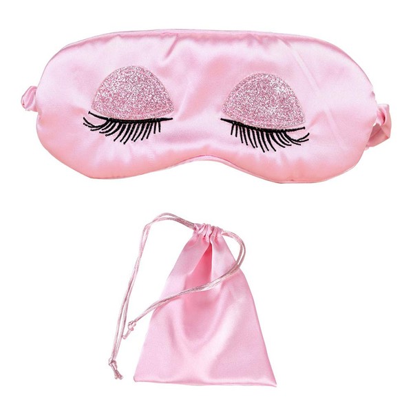 EleCharm Sweet Girl's Satin Eye Mask Long Eyelash Embroidered Eye Cover Sleeping Eyeshade with Portable Pouch