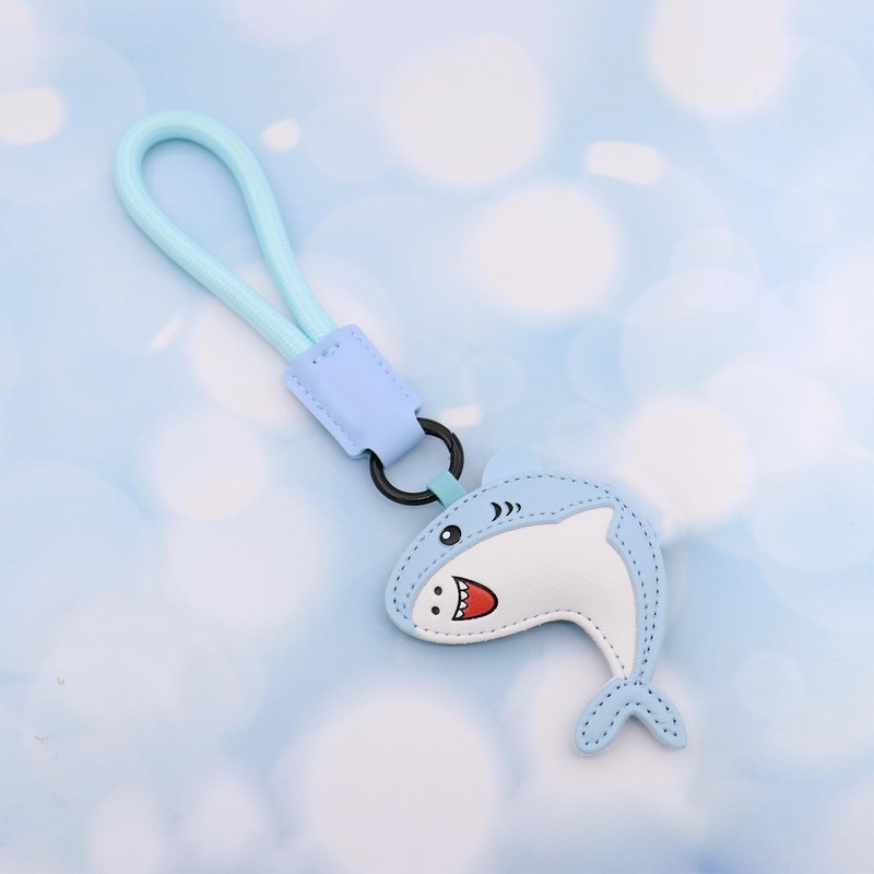Elechobby Blue Leather Marine Animals Keychain,Soft Cute Cartoon Dolphin Smooth Adorable Whale Charming Shark Keychain (Shark)