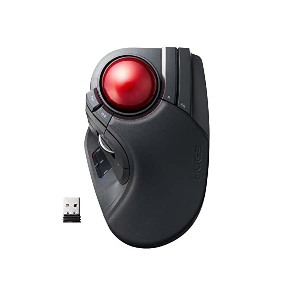 ELECOM 2.4GHz Wireless Finger-operated Large size Trackball Mouse 8-Button Function with Smooth Tracking, Precision Optical Gaming Sensor Palm Rest Attached (M-HT1DRBK)