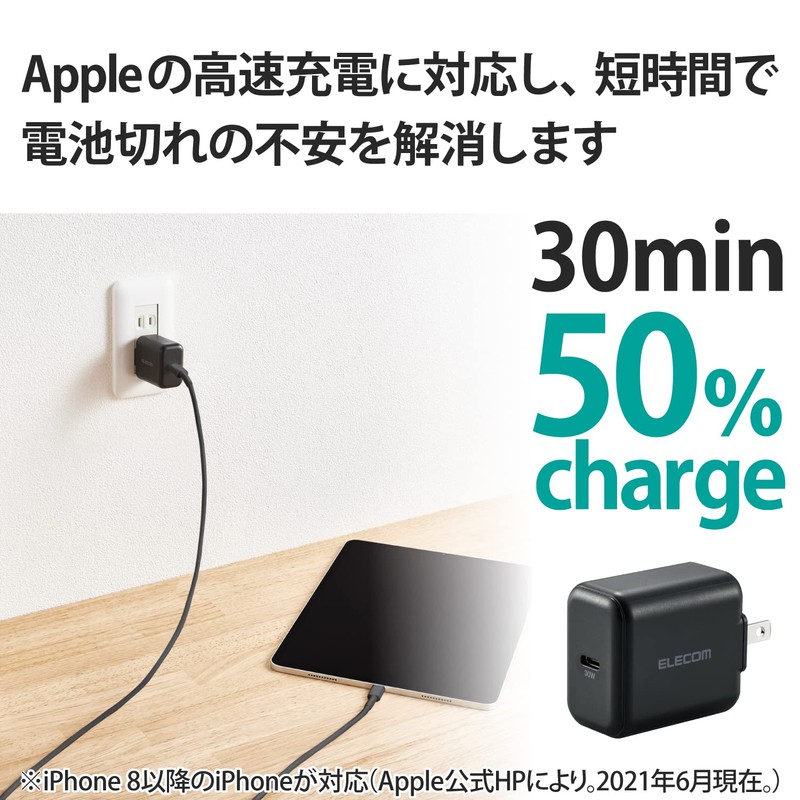 Elecom ACDC-PD2130BK USB Outlet Charger, 30W (USB PD Compatible), USB-C x 1, ...