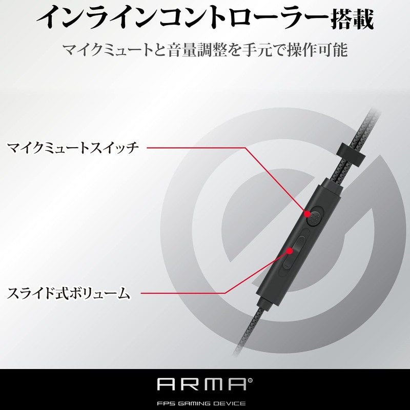 Elecom ARMA HS-ARMA50EBK Gaming Headset, Headphones, With Microphone Arm, Black