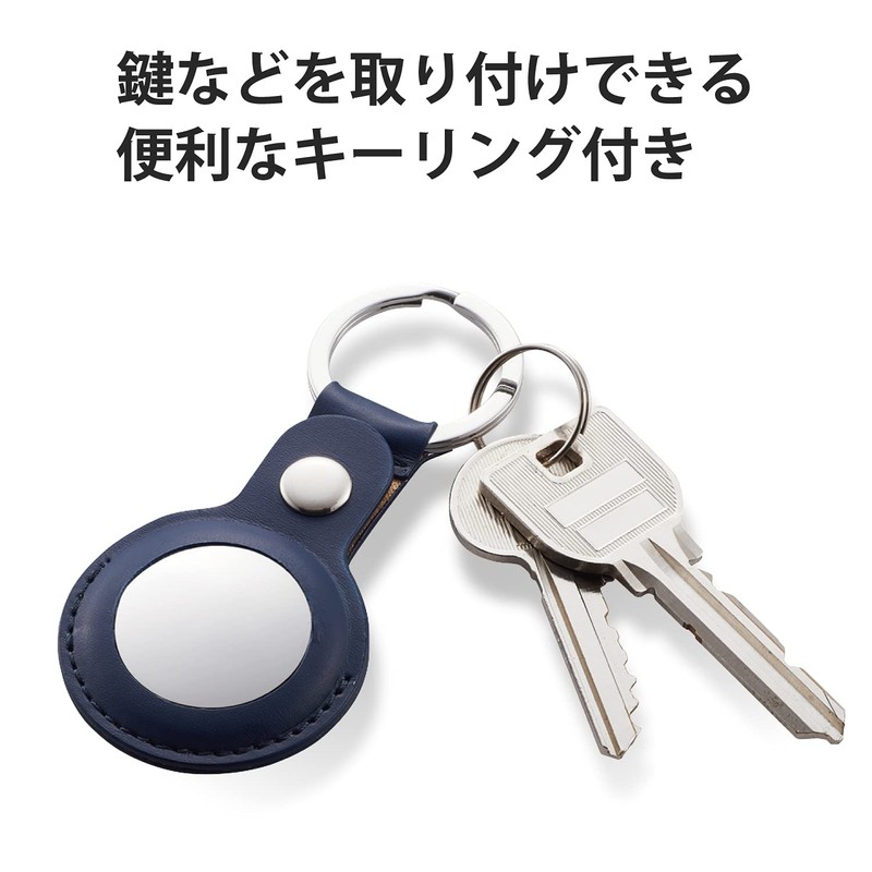 Elecom AT-LBKNV AirTag Case Soft Leather Bumper (with Key Ring) Navy