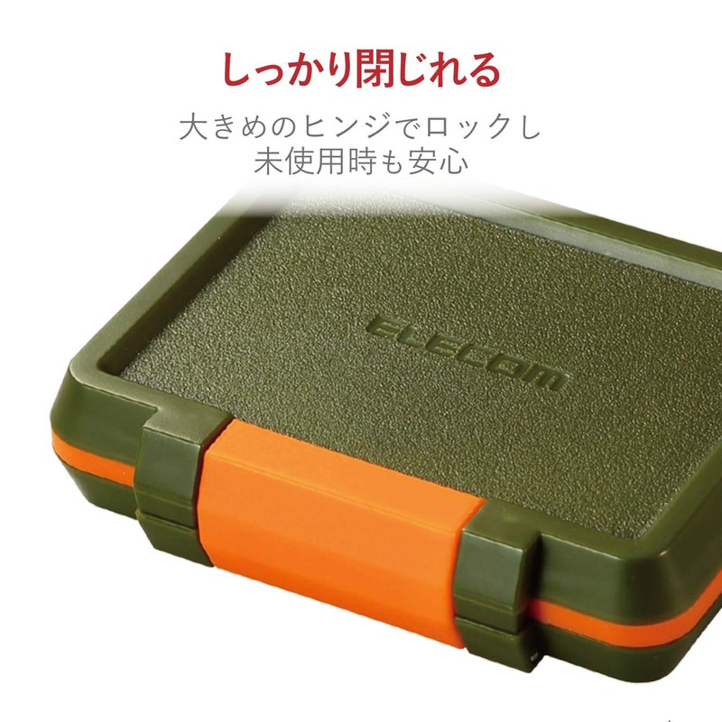 Elecom CMC-SDCHD01GN Memory Card Case, Holds 8 SDs, 8 MicroSDs, Impact Resistant, Khaki
