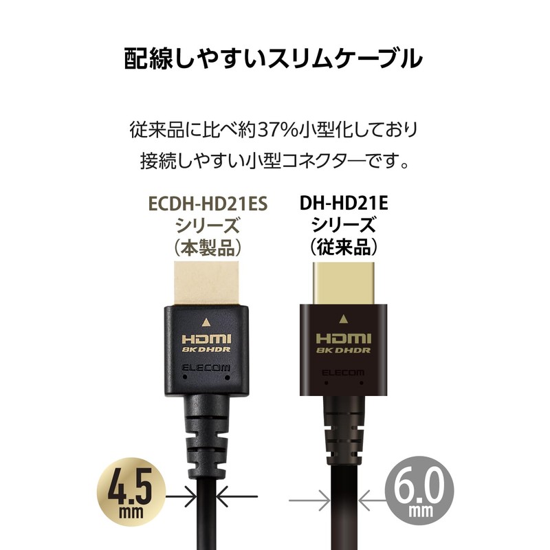 Elecom ECDH-HD21ES10BK HDMI Cable, 3.3 ft (1 m), Ultra High Speed, 4K (120Hz), 8K (60Hz), Ultra High Speed HDMI Cable Certified Product, 48 Gbps, Ultra High Speed, 7680 x 4320 eARC, Black