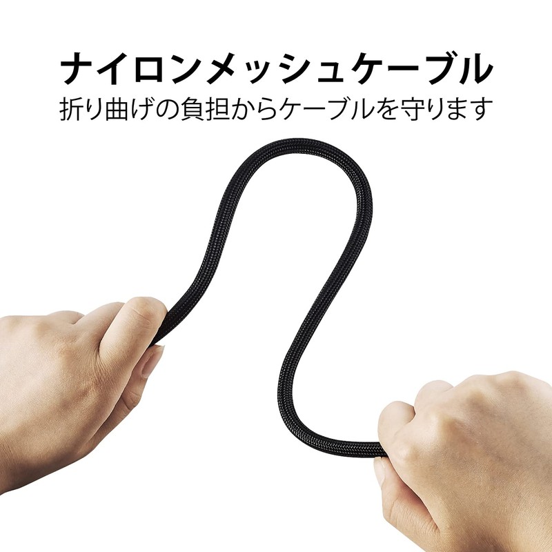 Elecom ECDH-HDP30SBK HDMI Cable, Premium Bend-resistant Nylon Mesh, 9.8 ft (3...
