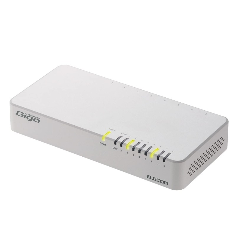 Elecom EHC-G08PN2-JW Switching Hub, Gigabit Compatible, 8 Ports, Plastic, Magnetic, Built-in Power Supply, White