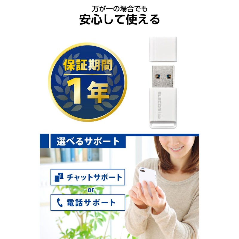 Elecom ESD-EXS0500GWH External 500GB USB 3.2 (Gen1) Small USB Flash Drive Type, White