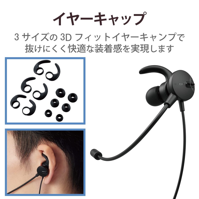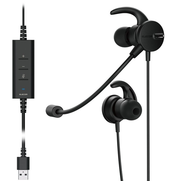 Elecom HS-EP101UNCBK Headset, USB Connection, Dual Mic Noise Reduction, Mute, Volume Function, Earphones, Binaural, Black