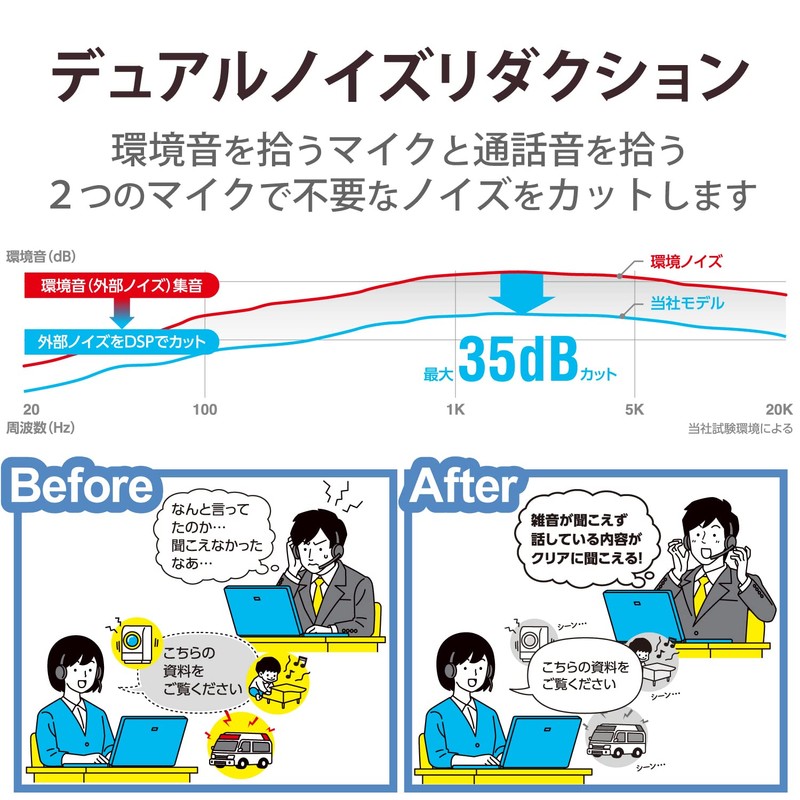 • The dual microphone noise reduction system reduces ambient noise and allows you to transmit clear audio with USB-A connection