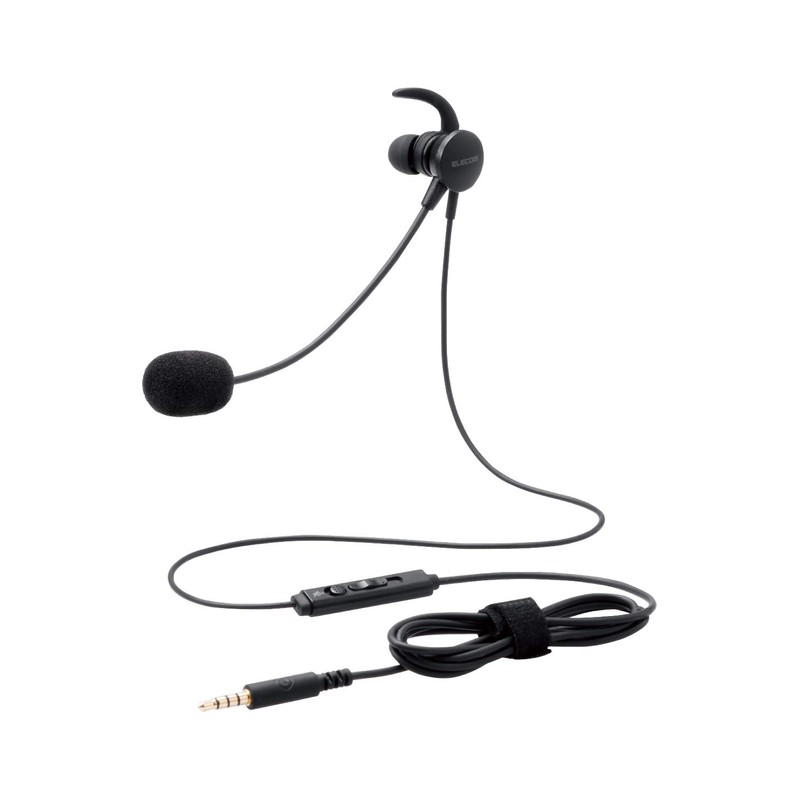 Elecom HS-EP16TBK Headset, Microphone Arm, 4 Pole Mini Plug, In-Ear, Wired wi...