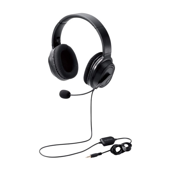 Elecom HS-HP30TBK Headset, 4 Pole Mini Plug, Overhead, Wired Binaural with Conversion Cable, 40mm Driver, Black