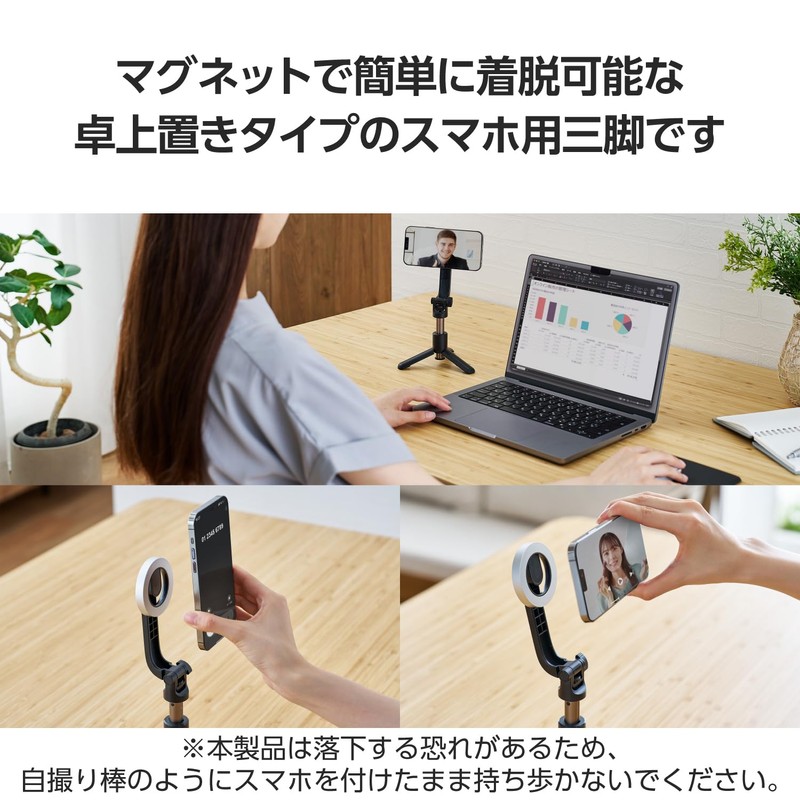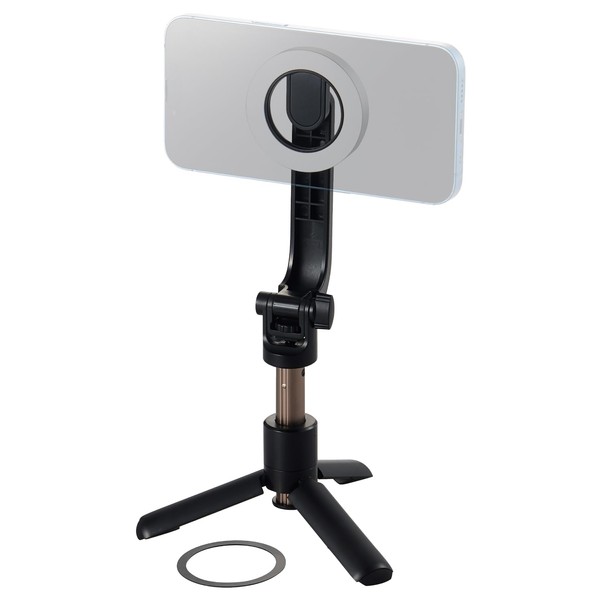 Elecom P-STMTBK Smartphone Stand, Smartphone Tripod Mount, Tabletop Type, Maximum Length 8.1 inches (20.5 cm), 360 Degree Rotation, Foldable, Compact, MagSafe Seal Included, Black