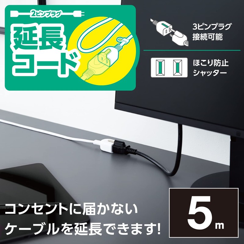 - This is a cord to extend the power source if your device does not reach an outlet. Can also be used with polarized 2-pin plug and 3-pin plug. Comes with a silicone tag with a 0.4 inch (10 mm) diameter hanging hole, so you can hang it on a hook. You can use it without worrying about accidents when using the anti-tracking plug and anti-dust shutters. Grounding does not work when using a 3-pin plug