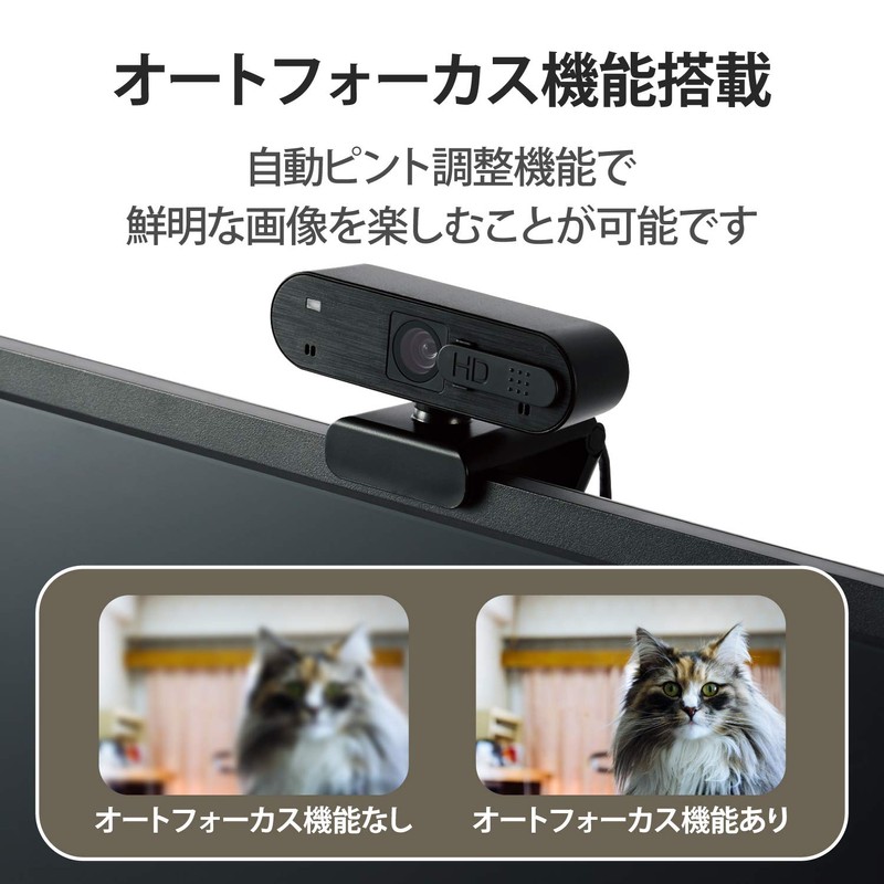 Elecom UCAM-C820ABBK Web Camera, Full HD, 1080p, 30FPS, 2 Megapixels, Autofoc...