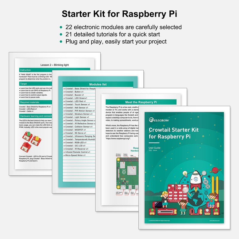 • Compatible models ---- Crowtail-Starter Kit compatible with raspberry pi 4, 3B, 3B+, even Pi zero. (RPi NOT included)