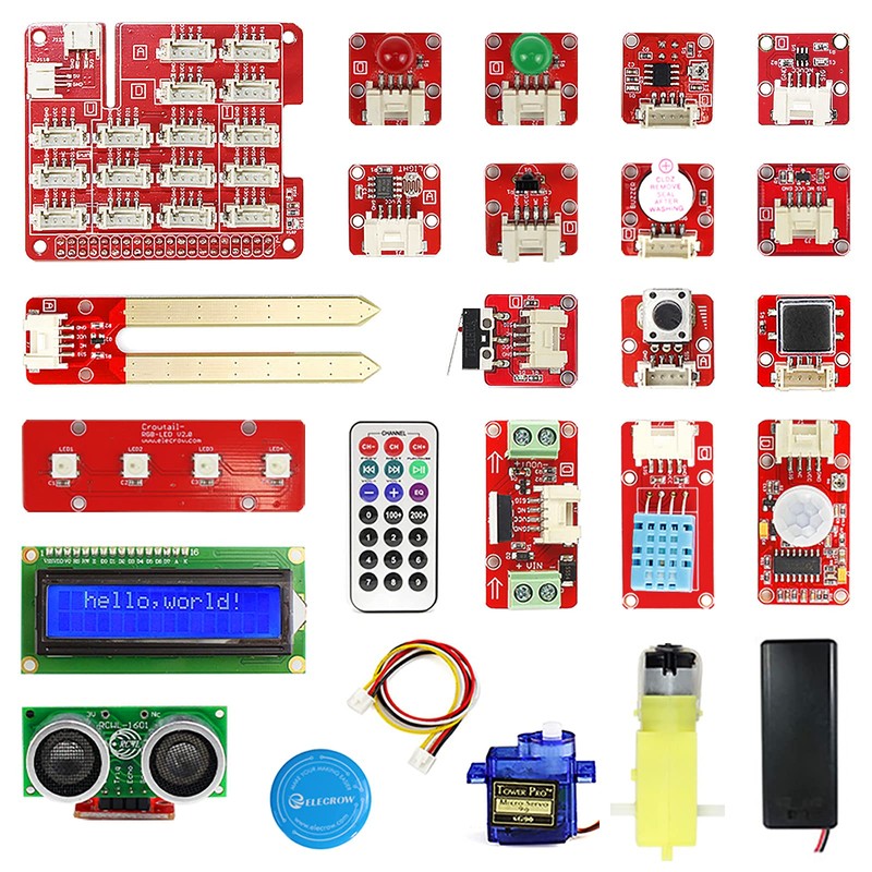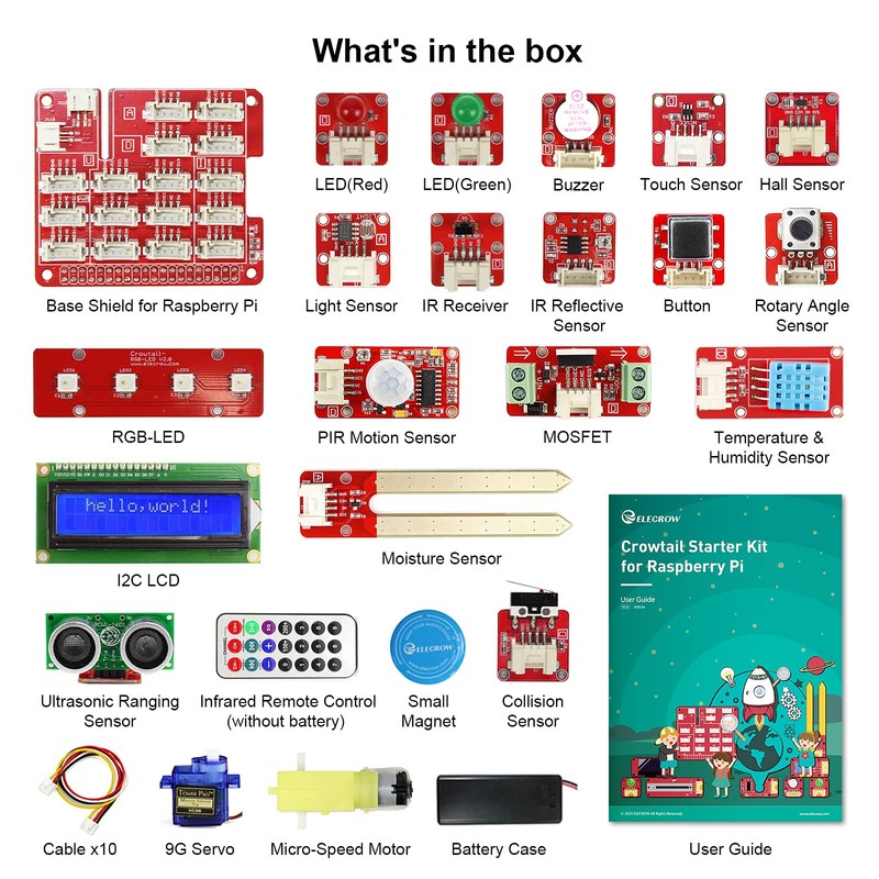 This is a Crowtail-Starter Kit compatible with Raspberry Pi.