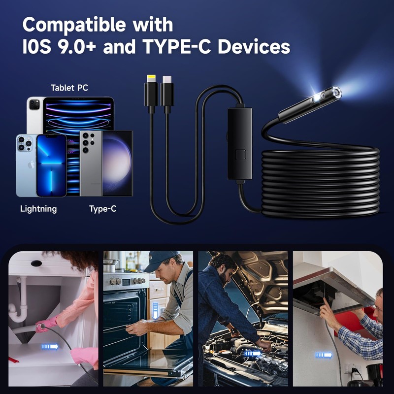 - Wide Applications: This endoscope camera with light is your first choice tool in a variety of scenarios. Whether it's in the car or around the engine, internal inspection of pipes, or house inspection for mold and wiring, it's up to the task. Its adjustable brightness feature ensures you can capture clear images even in low-light environments