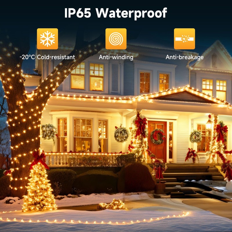 - IP65 Waterproof Outdoor Solar Light String: Fairy light string specific IP65 high waterproof rating, -20 °C cold resistance, durable materials, both durable and safe, not easy to knot, not easy to break, effectively withstand a variety of outdoor bad weather, perfect for outdoor decoration. You can install it on outdoor trees, steps, railings and other places to create an atmosphere for festivals, parties, weddings and more