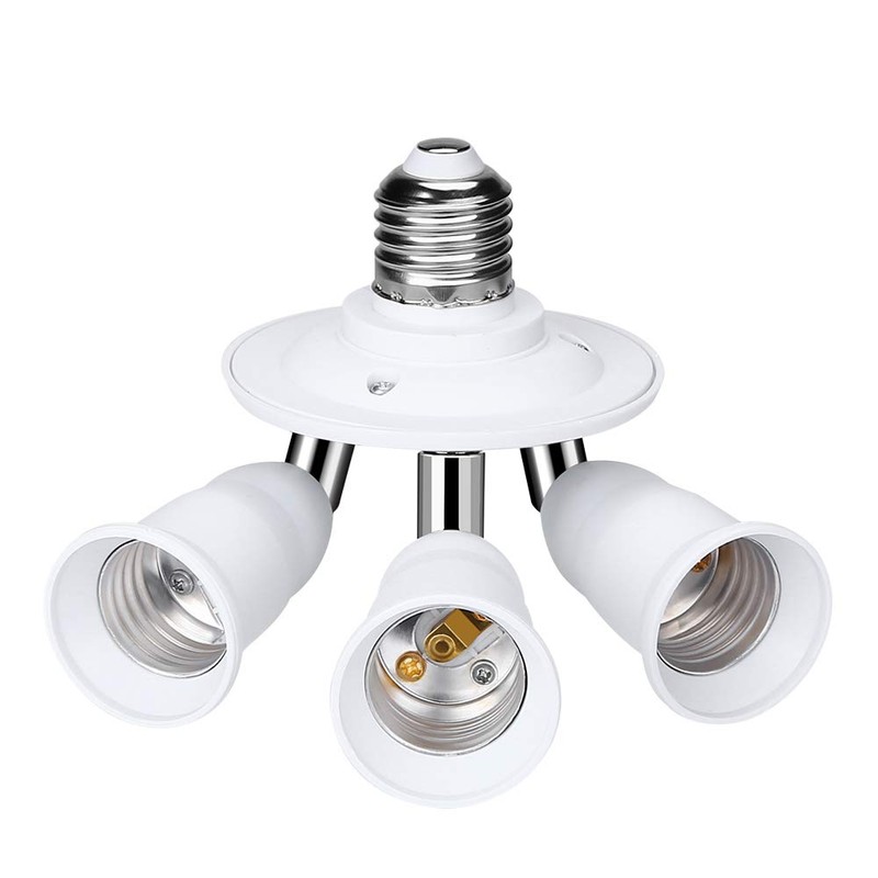 Electop E26 E27 Adjustable Socket Splitter,3 in 1 Socket White Bulb Base Adapter Lamp Holder,360 Degree Rotating 180 Degree Bending