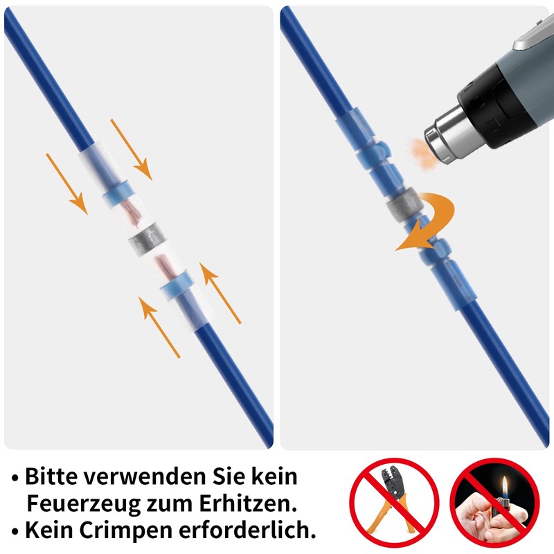 - Soldering connector set: the solder connector consists of a heat-melting polymer hose, with two solder rings with integrated flux and two thermoplastic sealing rings inside.