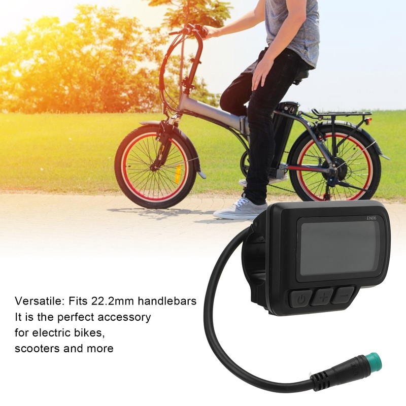 1、Multiple Data Display: Electric bike EN06 displa truly reflects the battery power, records the power consumption in real time, and ensures the riding mileage. 2、Compatible Voltage: Electric bicycle EN06 LCD display is cmpatible with 24V 36V 48V voltage, having stable and reliable performance. 3、Wide Application: Electric bike LCD display is suitable for mounting 22.2mm handlebars, it is the perfect accessory for electric bikes, scooters and more. 4、Toughness and Water Resistance: The plastic casing has good toughness and waterproof performance, providing protection for the internal circuit. 5、Replacement Part: Electric bicycle LCD display is easy to install and disassemble, you can replace the old or damaged parts to obtain higher strength.